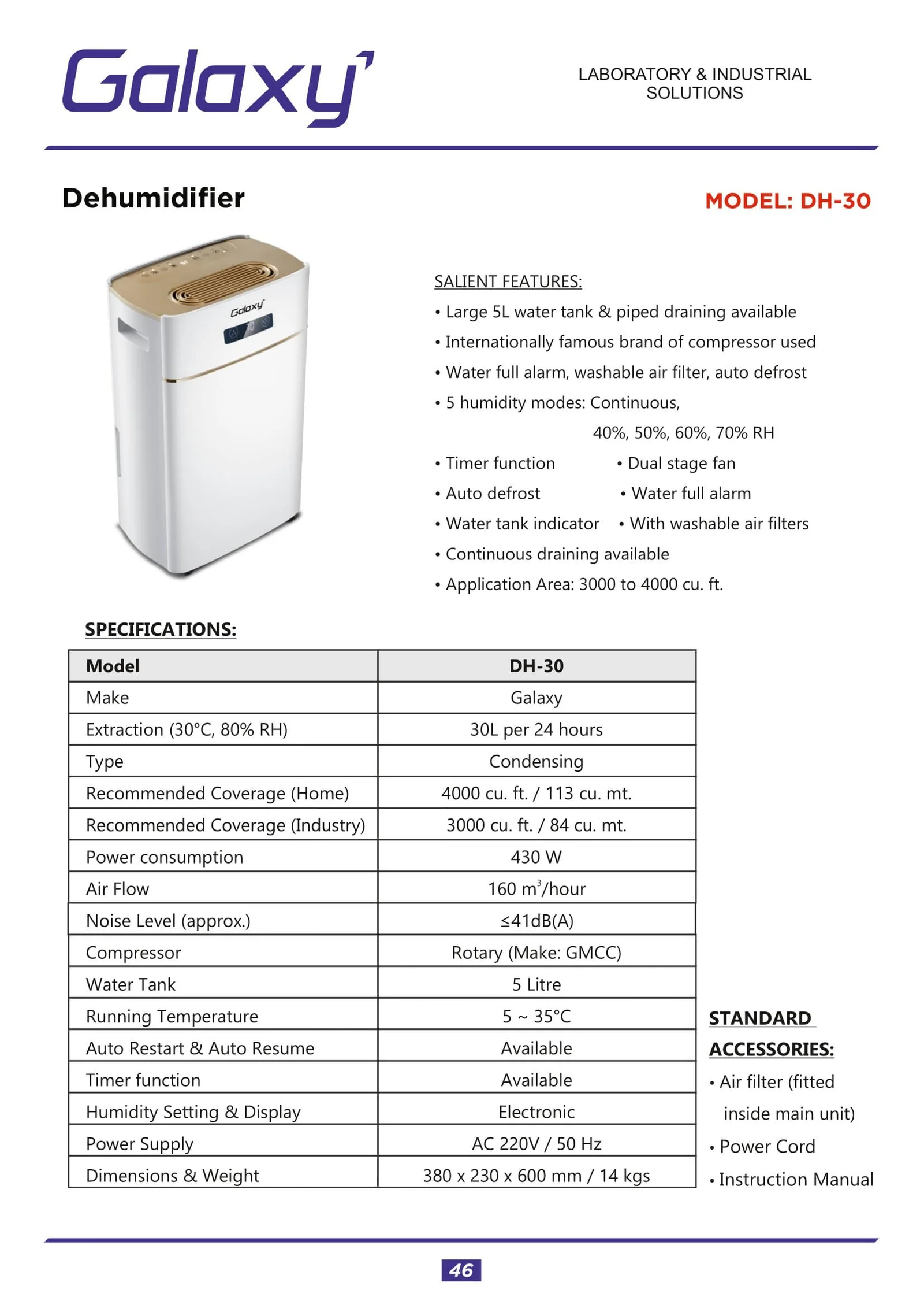 Unveil the superior features of our Galaxy DH-30 Condensing Dehumidifier: