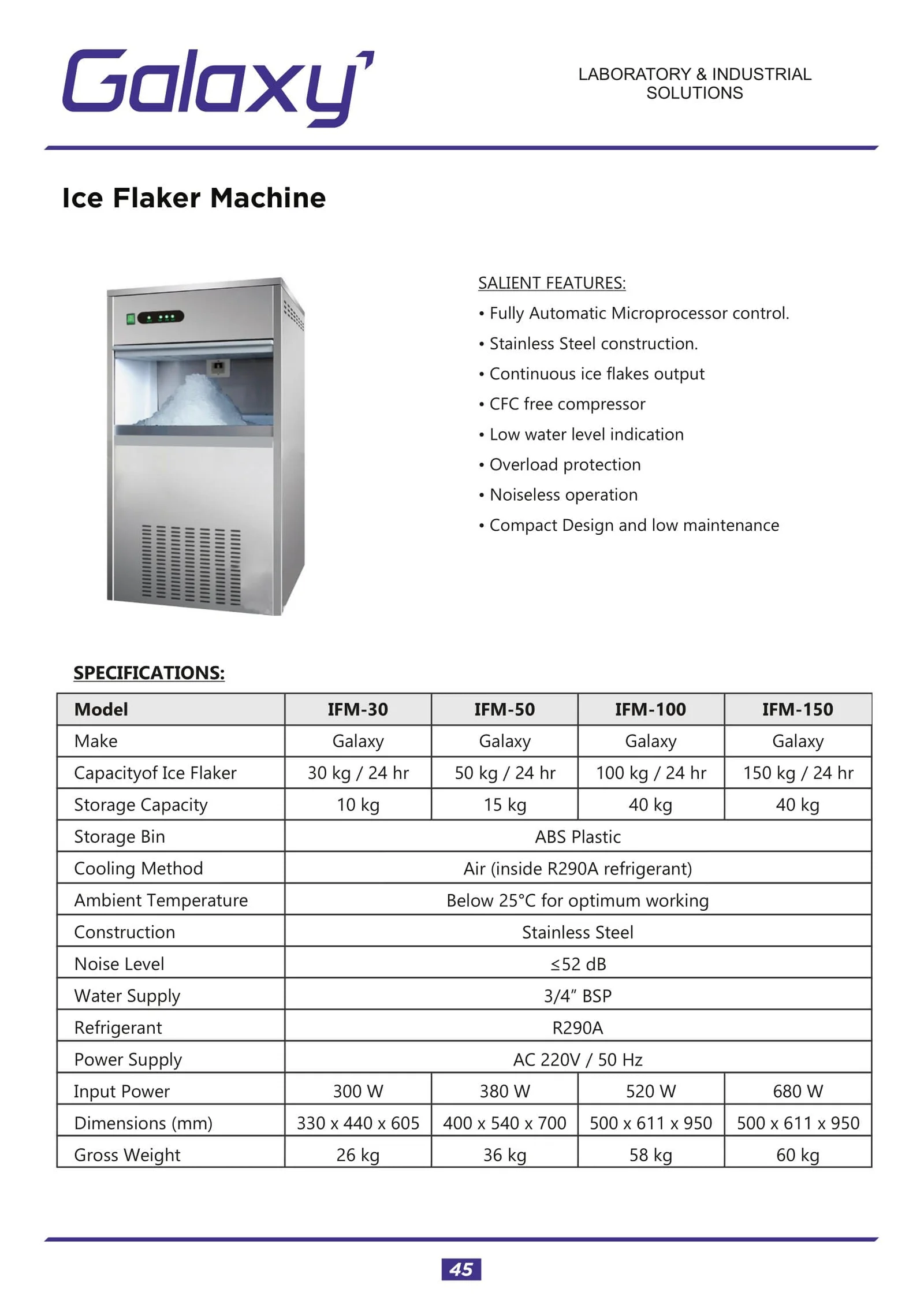 The Ice Flaker Machine IFM-100 produces thin, dry flakes that provide maximum surface contact with containers, samples, and materials.