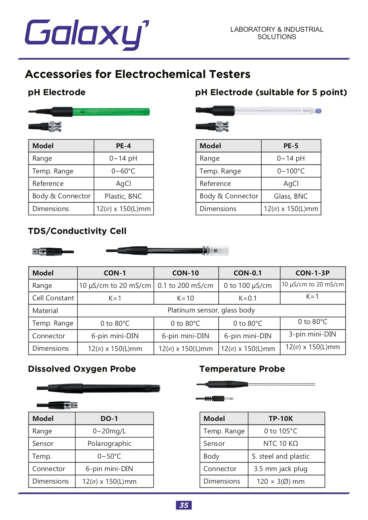 Galaxy TDS and Conductivity cells are superior quality electrodes available in various cell constants like K=1, K=0.1, K=10 for various applications.
